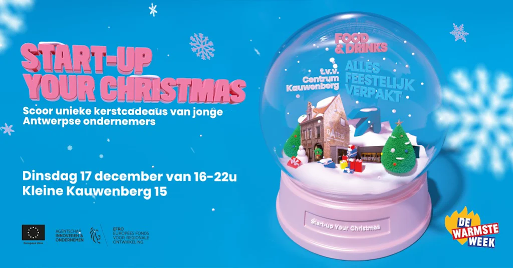 This year TAKEOFFANTWERP, GATE15, SINC and bar_TAKEOFF team up for Start-Up Your Christmas! At our annual Christmas Event, you can buy original Christmas presents from young, local entrepreneurs, enjoy a glass of mulled wine and contribute to charity by listening to your favourite music. You can read more about what we have to offer this time below!